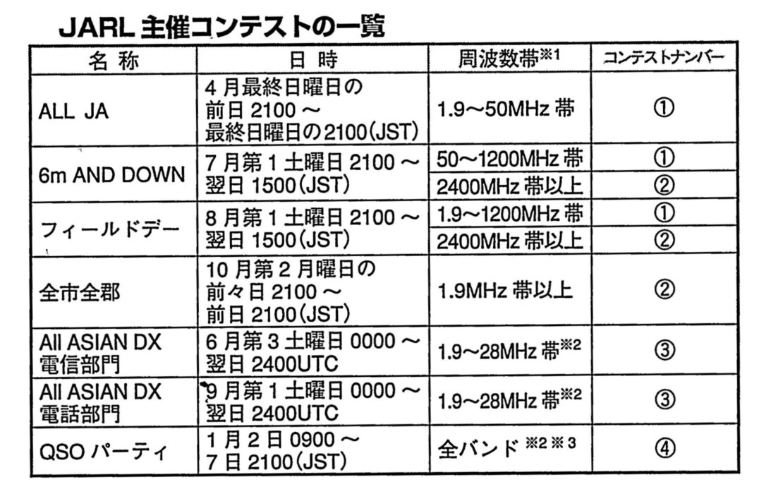 ※2、JARL主催コンテスト周波数外での交信も認められます。
