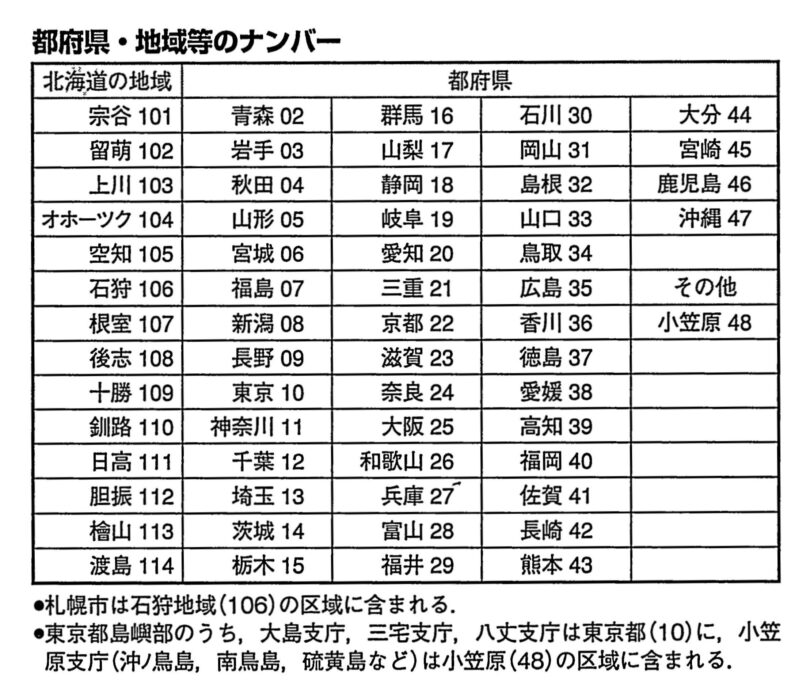 都府県・地域等のナンバー