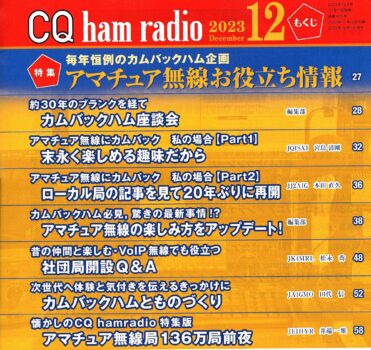 まとめ:CQ ham radio23年12月号~特集”アマチュア無線お役立ち情報~毎年恒例カムバックハム企画”