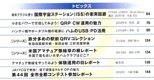 JA1YCQで参加! 皆で頑張るマルチOPの魅力 /第44回 全市全郡コンテスト参加レポート JH1JDI 上岡 沙織 144p