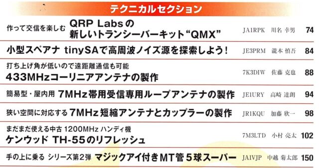 作って交信を楽しむ QRP Labsの新しいトランシーバーキット“QMX”/JA1RPK 川名 幸男 74p