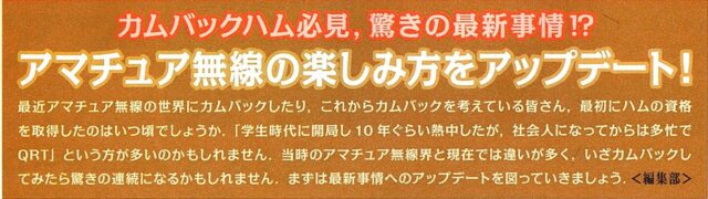 特集”アマチュア無線お役立ち情報~毎年恒例カムバックハム企画”