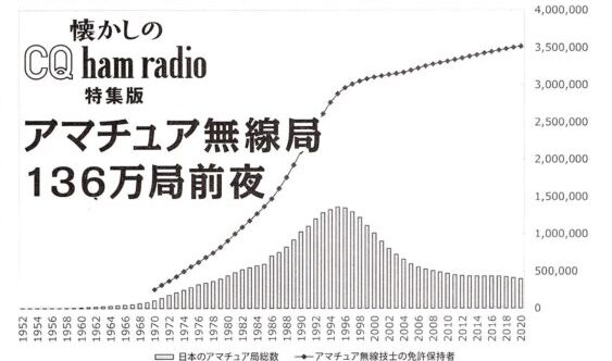1995年3月末、アマチュア無線局数は136万局に達しました。そこから100万局以上が減少し、現在は約37万局。136万局に達する前夜に、何が起こっていたのかが証されています。