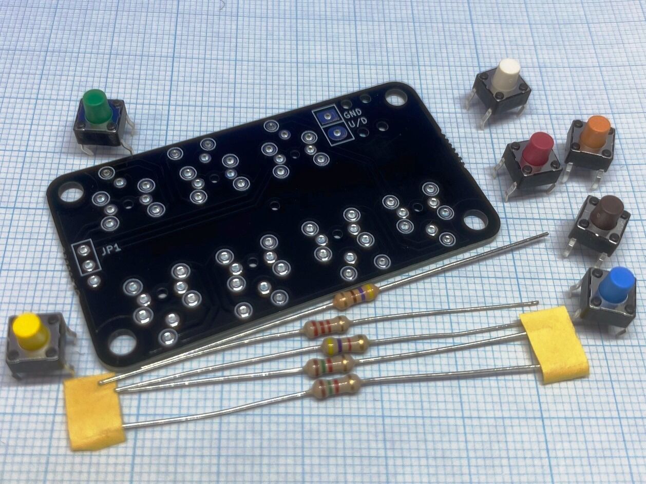 このキットには、周波数のUP/DOWN用のスイッチも用意されているのでUP/DOWNが出来ます。ICOMのマイクSM-30などでは、UP/DOWNができないので、ちょうど良いかも知れませんね。¥1200