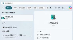 【MMQSL】のプログラムを起動するためには、「アプリの検索」で「mmqsl.exe」を探します。