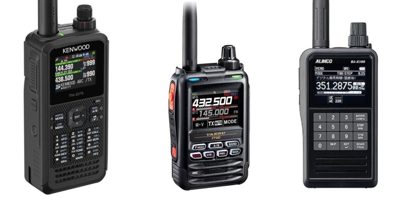 左からTH-D75[JVCケンウッド]、 FT5D[八重 洲無線]、DJ-X100[アルインコ]